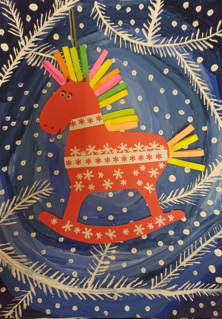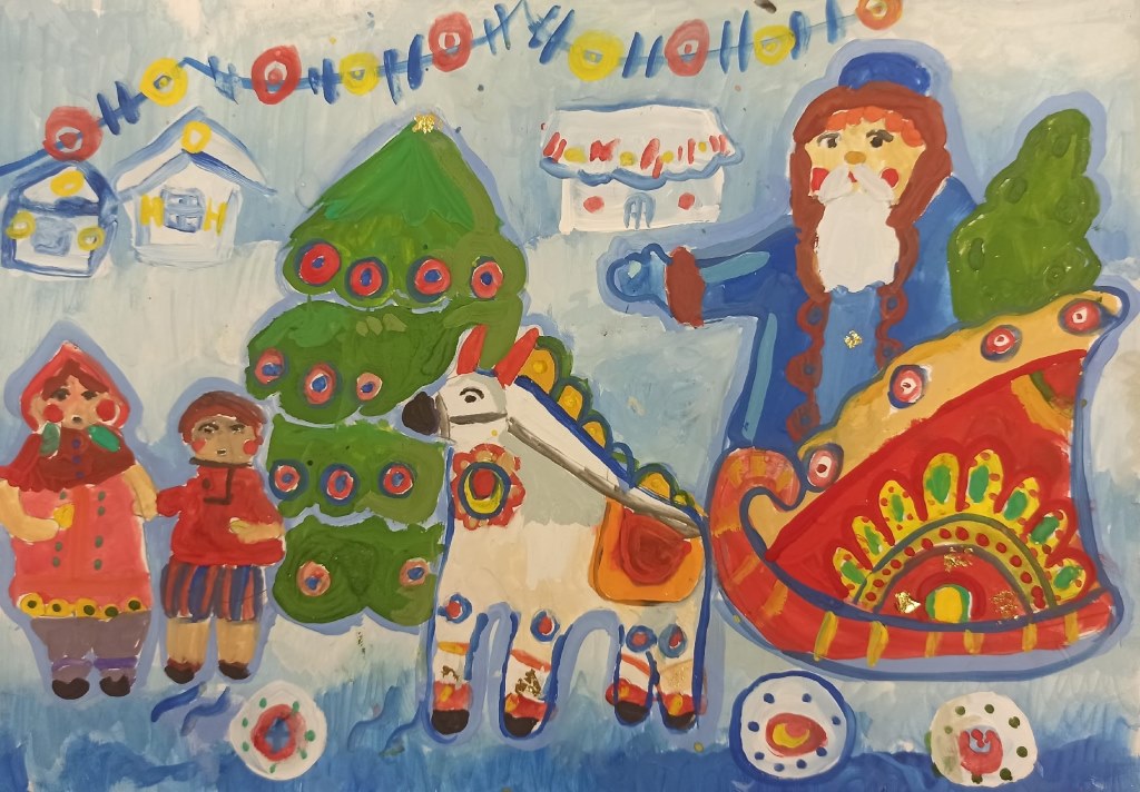Рождество и Новый год — самые волшебные праздники в году. Неудивительно, что многие знаменитые новогодние истории — это сказки. Выставка наполнена предпраздничной атмосферой зимы, насыщена разнообразием техник и сюжетов. Новогодняя сказка, зимние игры и забавы, сказочные персонажи и животные, символы наступающего года — все это можно увидеть в работах юных художников групп эстетического развития и подготовительных групп. Детской художественной школы выполненных: гуашью, цветными карандашами, пластилином, цветной бумагой и фломастерами, а также в технике гратажж и аппликации.
