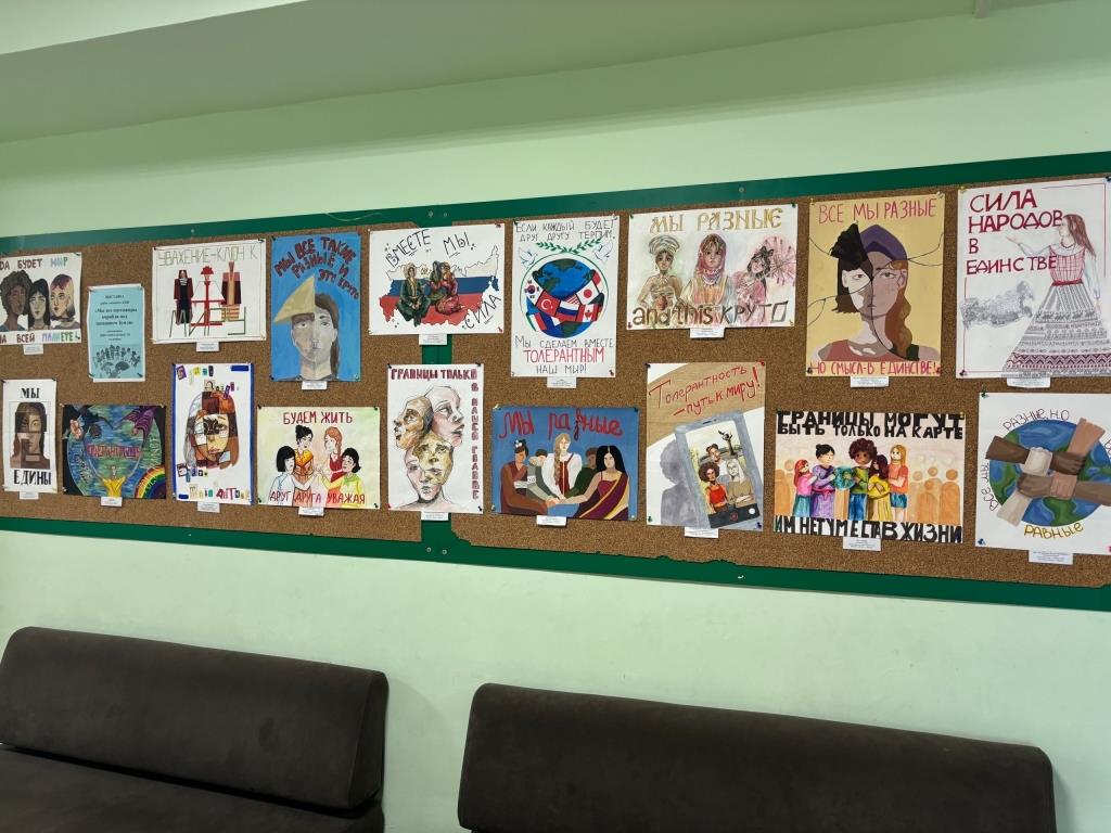 Юные художники представили вниманию зрителей более 15 плакатов, созданных с использованием гуаши, акварели и цветных карандашей. Работы демонстрируют глубокое понимание и уважение к разнообразию культур и традиций. Плакаты призывают к терпимости, дружбе и взаимопониманию между людьми разных национальностей, вероисповеданий и взглядов.