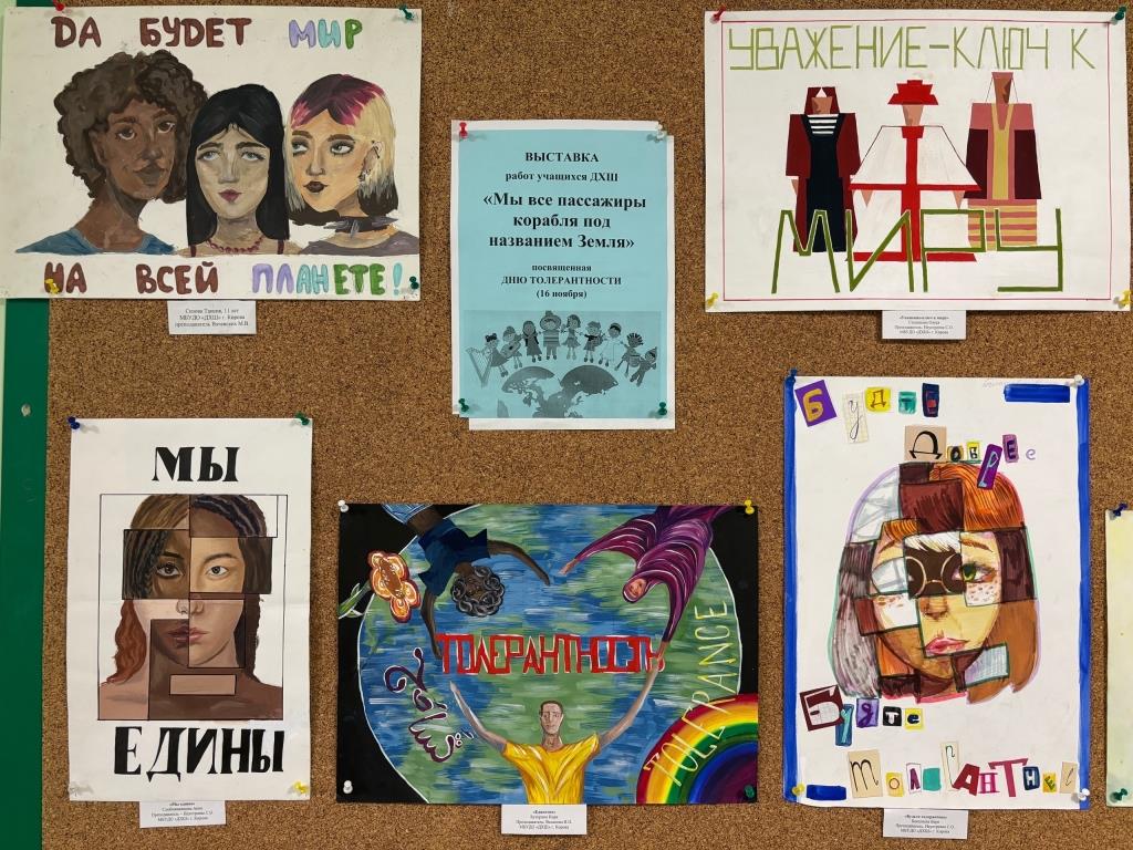 С 13 ноября 2025 года в здании Детской художественной школы по адресу М. Гвардии, 52 открылась выставка рисунков и плакатов «Мы все пассажиры корабля под названием Земля», посвященная Дню толерантности.