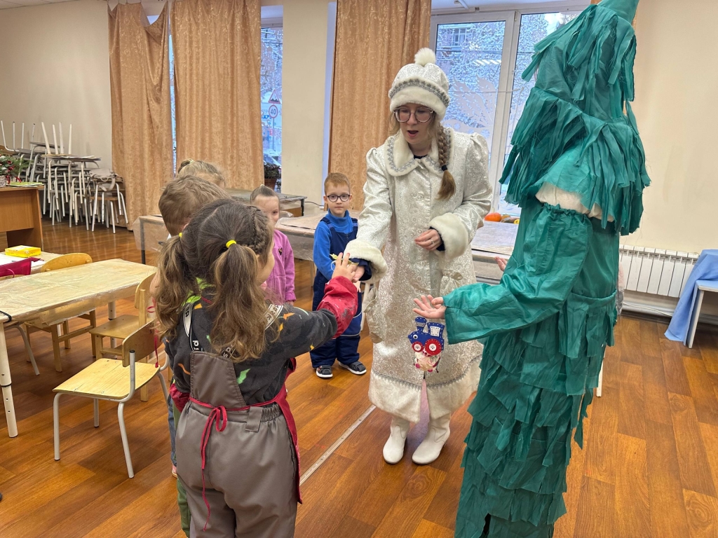 В гости к ребятам пришли любимые новогодние герои – Дед Мороз, Снегурочка и Ёлка. Вместе с ребятами они нарядили к празднику ёлку, спели ей песенку, водили хороводы и нарисовали волшебный портрет Деда Мороза! Все участники мероприятия получили сладкие подарочки от Деда Мороза.